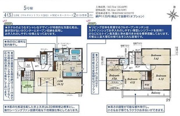 | 間取り | 4LDK(マルチエントランス3.5帖含む) 間取り内訳:リビングダイニングキッチン 16.5帖・洋室 9.5帖・洋室 6.3帖・洋室 5.6帖・収納 3.5帖 |