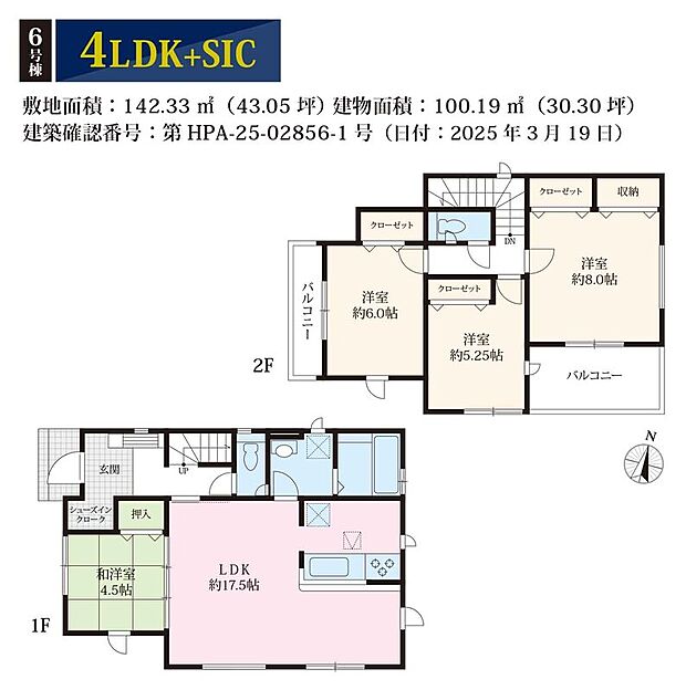 建物面積 100.19m2(30.30坪)~101.85m2(30.80坪)