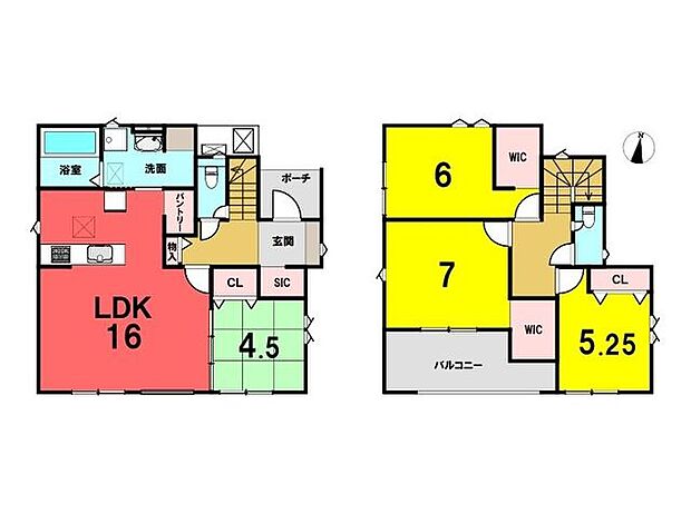 | 間取り | 4LDK 間取り内訳:リビングダイニングキッチン 16帖(1階)・和室 4.5畳(1階)・洋室 7帖(2階)・洋室 6帖(2階)・洋室 5.2帖(2階) |