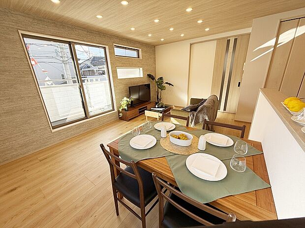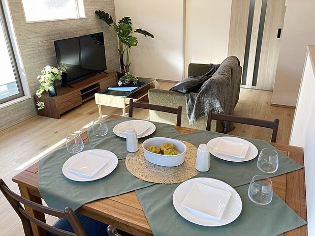 ルーフバルコニーで家族や友人とのBBQやパーティー、小さなお子さんの遊び場、ワンちゃんがのびのび走り回れる場所など暮らしを彩る家族皆の特別空間!水道・屋外用コンセント・照明が嬉しい標準装備! リビングは2階に配置されていることで通行人や近隣からのプライバシーが守られ、家族皆ゆったりくつろいで頂ける空間となります。南向きに面した明るいリビングで家族団らんお過ごしください。 南西向きに面した明るく陽当たりが良く、車通りの少ない落ち着いた住まい環境です。スーパーやドラッグストアなどが入ってるショッピング施設「グリーンガーデン」まで徒歩7分、お買い物施設も整った環境です。