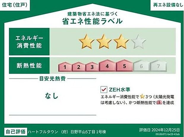 星マークの数が多いほどエネルギー消費性能が高いことを示しています。再エネ設備のない住宅は★0~★4の5段階評価、再エネ設備がある住宅は★0~★6の7段階評価となります。