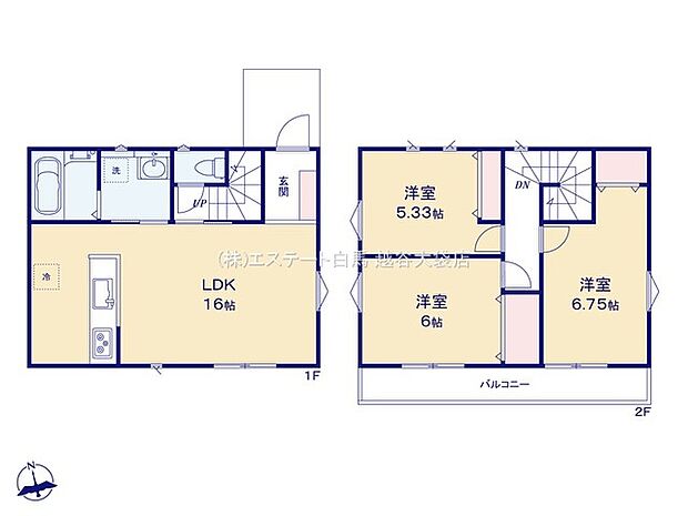 | 間取り | 3LDK 間取り内訳:リビングダイニングキッチン 16帖・洋室 6.7帖・洋室 6帖・洋室 5.3帖 |
