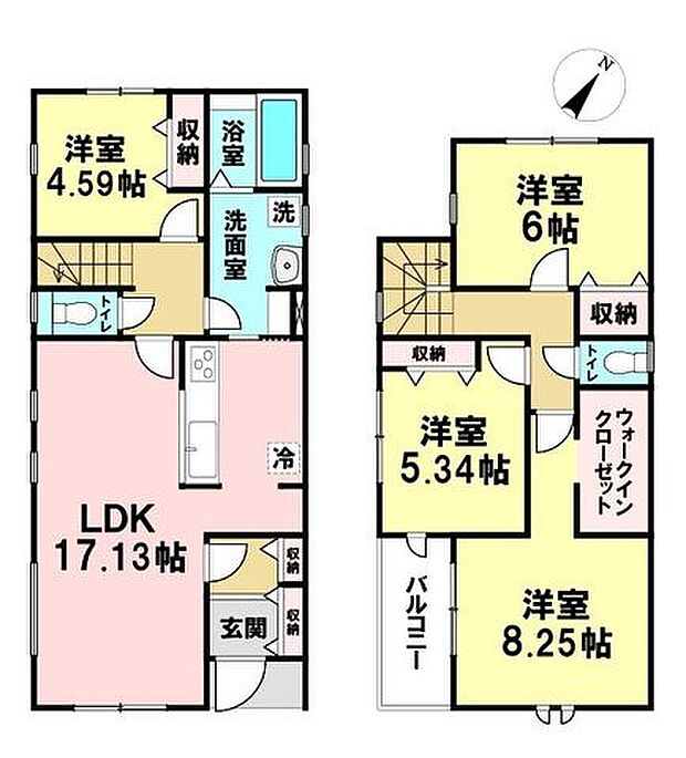 間取り内訳:リビングダイニングキッチン 17.1帖(1階)・洋室 4.5帖(1階)・洋室 5.3帖(2階)・洋室 6帖(2階)・洋室 8.2帖(2階)