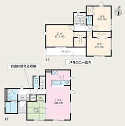 | 間取り | 3LDK 間取り内訳:リビングダイニングキッチン 18.5帖(1階)・洋室 7帖(2階)・洋室 6帖(2階)・洋室 6帖(2階) |