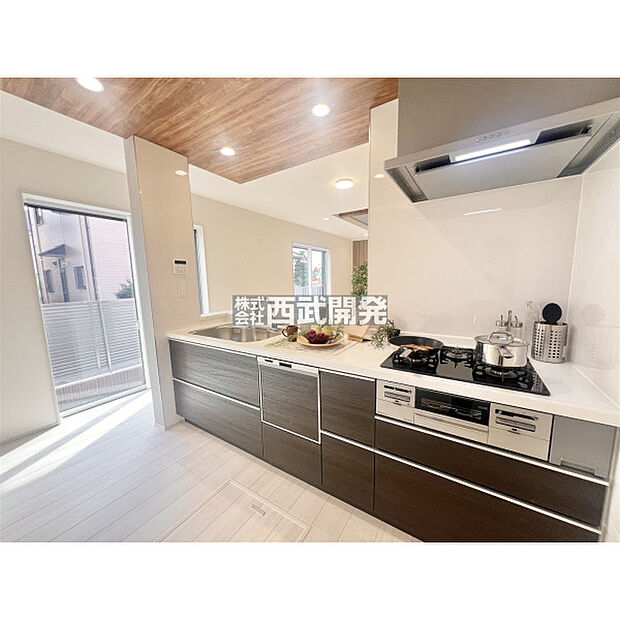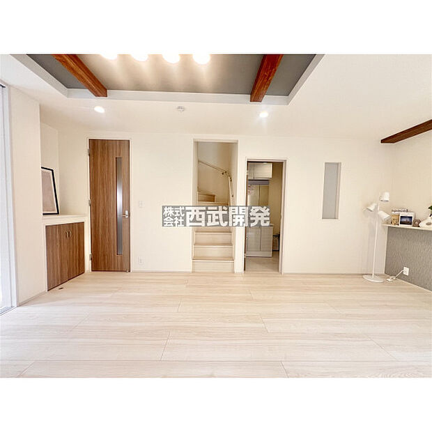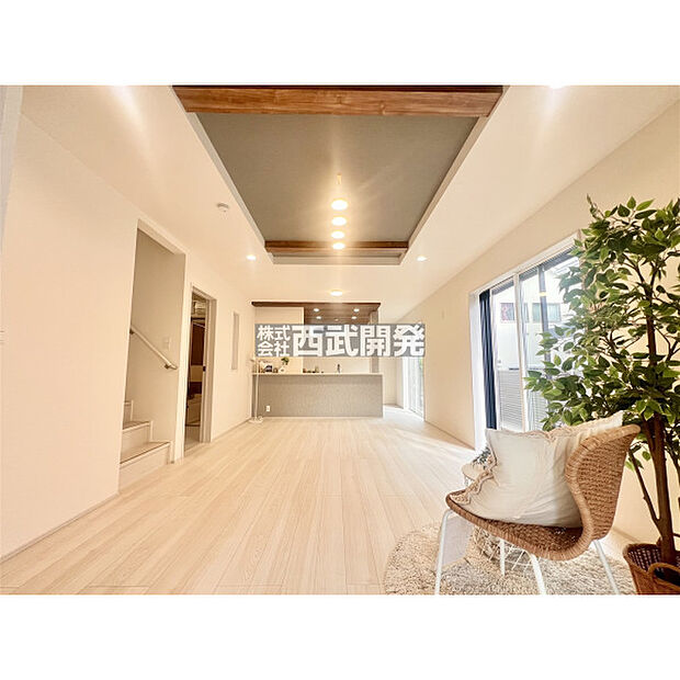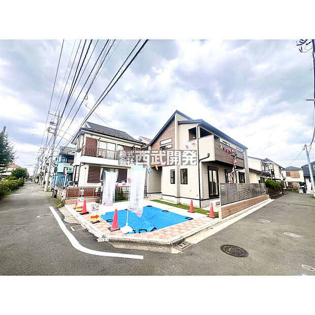 カースペース並列2台分確保した44坪超のゆとりある敷地/南西角地で陽当り良好/リビングイン階段採用