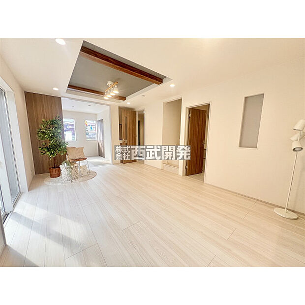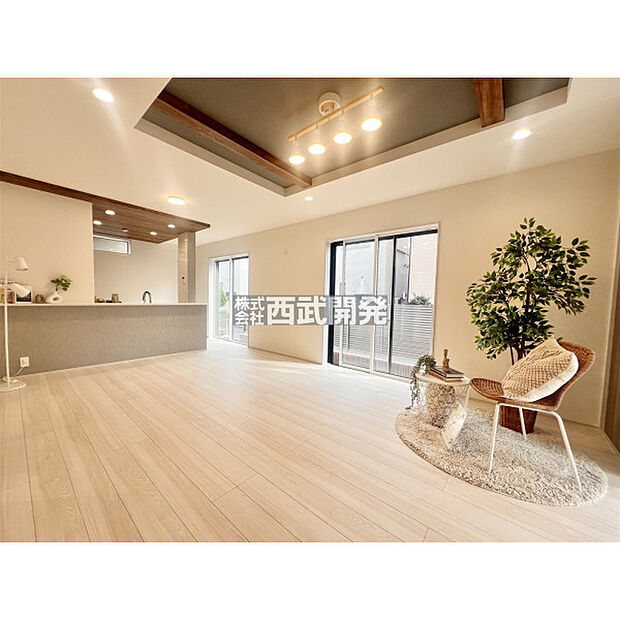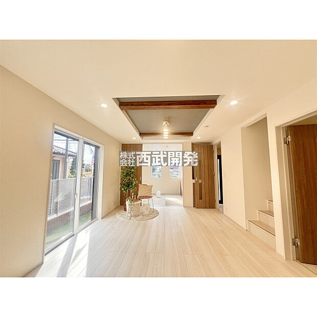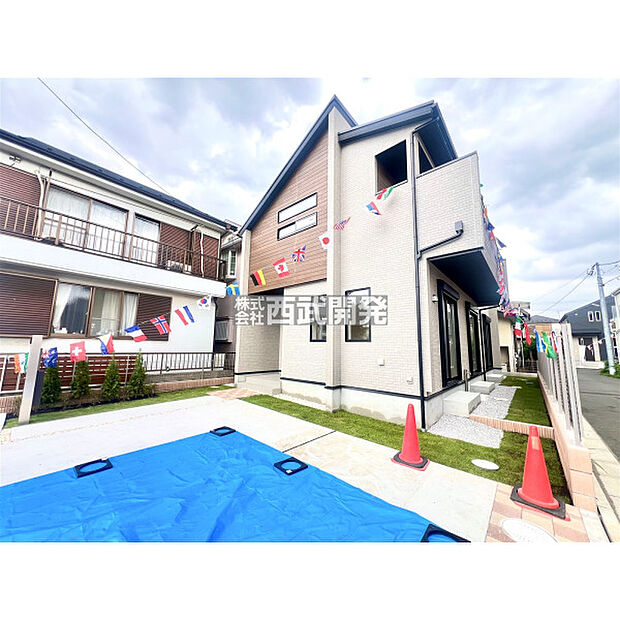 カースペース並列2台分確保した44坪超のゆとりある敷地/南西角地で陽当り良好/リビングイン階段採用