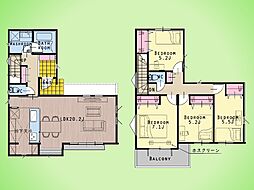 | 間取り | 4LDK 間取り内訳:リビングダイニングキッチン 16帖(1階)・和室 3畳(1階)・洋室 6帖(2階)・洋室 6帖(2階)・洋室 6帖(2階) |