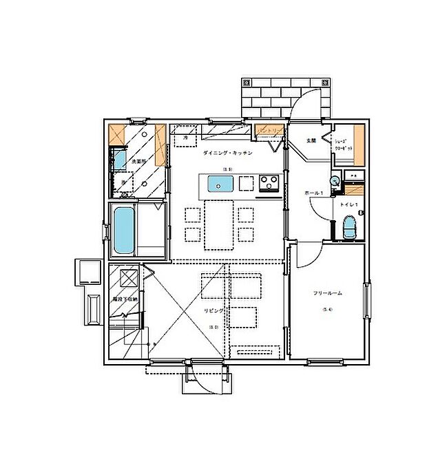 - 「建築条件付き土地」の「建物プラン例」は、土地購入者の設計プランの一例であり、プランの採用可否は任意です。