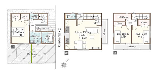 | 間取り | 3LDK+ホールクローゼット | 建物階 | 木造3階建 |