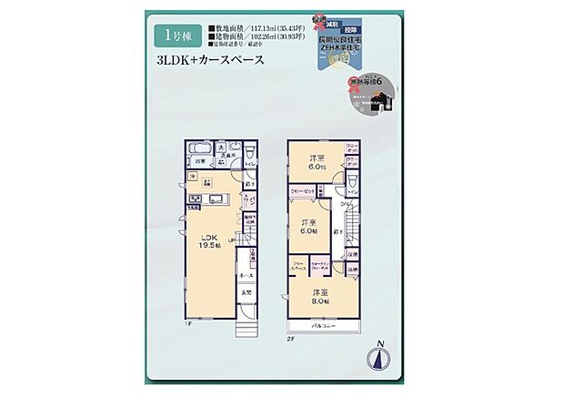 | 間取り | 3LDK 間取り内訳:リビングダイニングキッチン 19.5帖・洋室 8帖・洋室 6帖・洋室 6帖 |