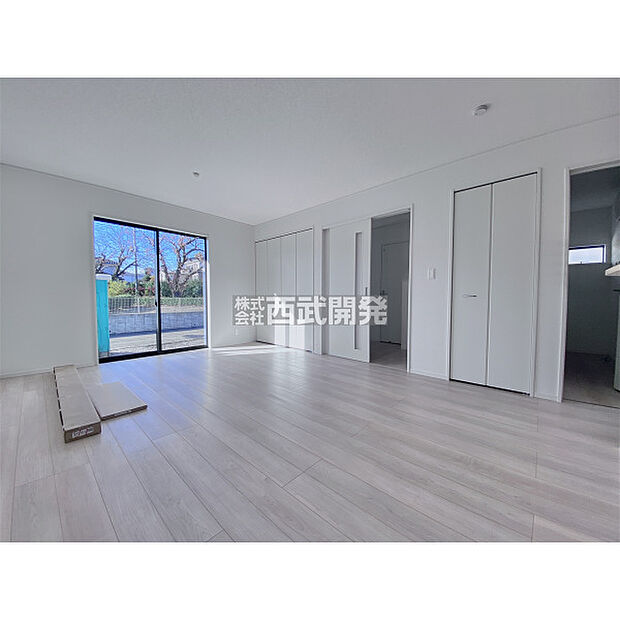 LDK約16.0帖/対面キッチンで開放感・通風良好/カースペース2台(車種による)