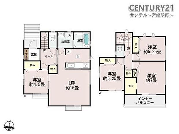 | 間取り | 4LDK 間取り内訳:リビングダイニングキッチン 16.2帖(1階)・洋室 4.5帖(1階)・洋室 7帖(2階)・洋室 6帖(2階)・洋室 5.2帖(2階) |