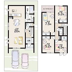 | 間取り | 3LDK 間取り内訳:リビングダイニングキッチン 19帖(1階)・洋室 7帖(2階)・洋室 6.2帖(2階)・洋室 6帖(2階) |