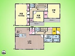 間取り 3LDK(5号地、10号地、14号地)、4LDK(7号地) 建物階 軽量鉄骨2階建(4戸)