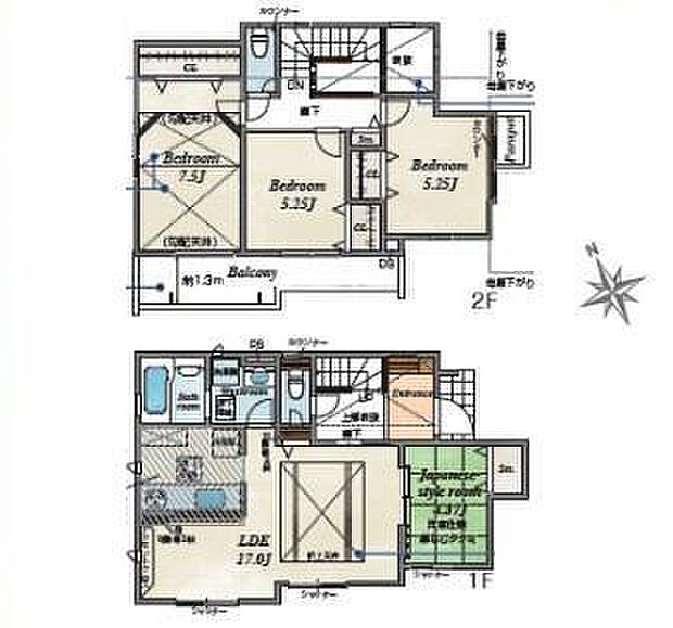• 「建築条件付き土地」の「建物プラン例」は、土地購入者の設計プランの一例であり、プランの採用可否は任意です。