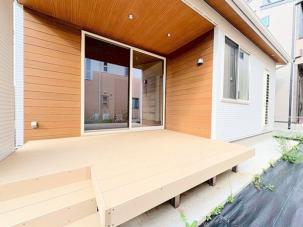 ・南側は庭先4m以上で広々 ・ウッドデッキのあるLDKはゆったり19.4帖 ・小中学校まで約640m内 スーパーまで約350m