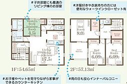 | 間取り | 4SLDK 間取り内訳:リビングダイニングキッチン 17.5帖(1階)・和室 4.5畳(1階)・洋室 8.2帖(2階)・洋室 6.5帖(2階)・洋室 6帖(2階)・収納(2階) |