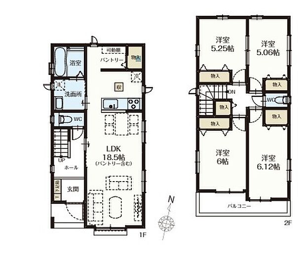 | 間取り | 4LDK 間取り内訳:リビングダイニングキッチン 18.5帖・洋室 6.1帖・洋室 6帖・洋室 5.2帖・洋室 5帖 |