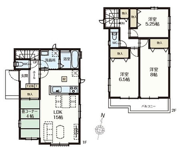 | 間取り | 3LDK(畳コーナー:4帖) 間取り内訳:リビングダイニングキッチン 15帖・洋室 8帖・洋室 6.5帖・洋室 5.2帖 |