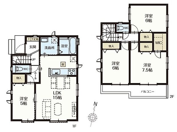 | 間取り | 4LDK 間取り内訳:リビングダイニングキッチン 15帖・洋室 7.5帖・洋室 6帖・洋室 6帖・洋室 5帖 |