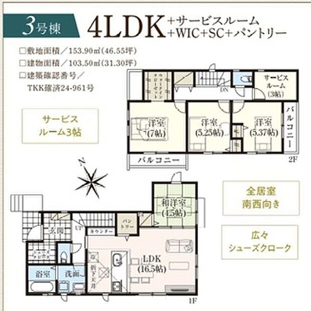 | 建物面積 | 98.53m2~103.5m2 | ||