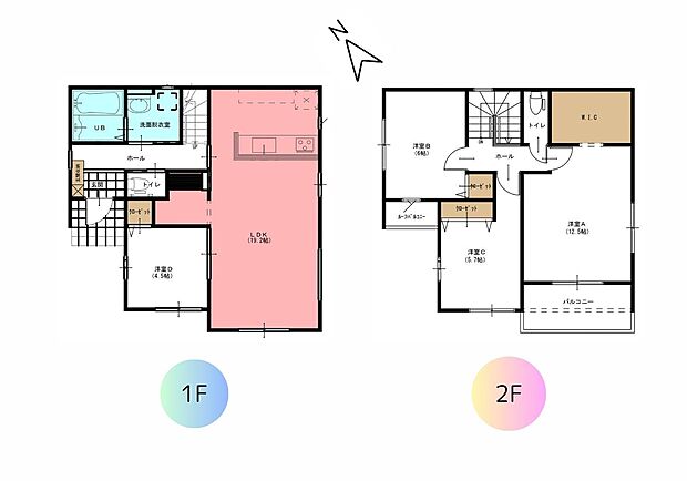 | 間取り | 4LDK 間取り内訳:リビングダイニングキッチン 19.2帖(1階)・洋室 4.5帖(1階)・洋室 5.7帖(2階)・洋室 6帖(2階)・洋室 12.5帖(2階) |