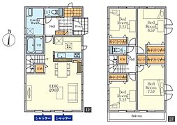 | 間取り | 4LDK 間取り内訳:洋室 5.2帖(2階)x2・洋室 7.1帖(2階)・リビングダイニングキッチン 18帖(1階)・和室 5畳(1階) |