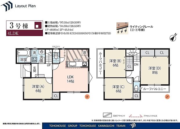 • 「建築条件付き土地」の「建物プラン例」は、土地購入者の設計プランの一例であり、プランの採用可否は任意です。