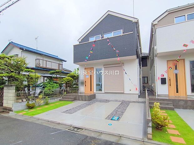 「大袋駅」徒歩14分。日光街道にも出やすい閑静な住宅街。お車での移動に便利な立地です。西側4m道路に面す。地形良好。木造2階建て4LDK。17.7帖のLDK。ファミリークローク付きでリビングスッキリ。