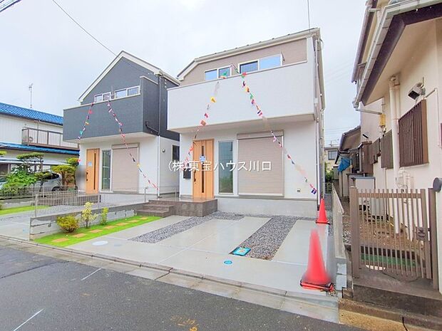 「大袋駅」徒歩14分。日光街道にも出やすい閑静な住宅街。お車での移動に便利な立地です。西側4m道路に面す。地形良好。木造2階建て4LDK。17.7帖のLDK。ファミリークローク付きでリビングスッキリ。