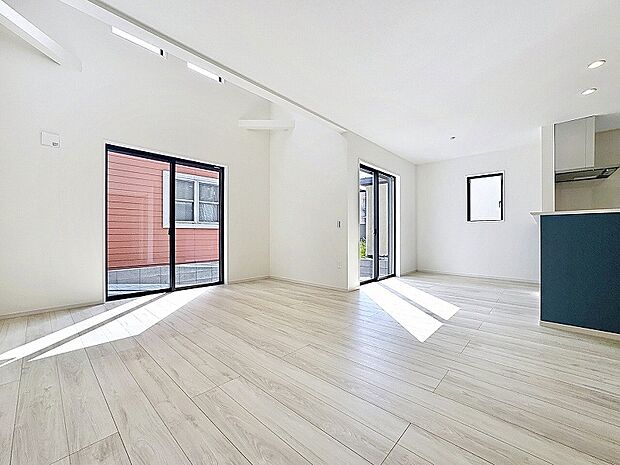 「草加」駅徒歩23分。バス便もあり、停歩4分。整形地&駐車2台可(車種による)。LDK19帖&主寝室8.5帖のゆとりの4LDK。全居室収納付(WIC含)。公園まで70m、閑静な住宅地。