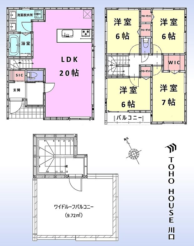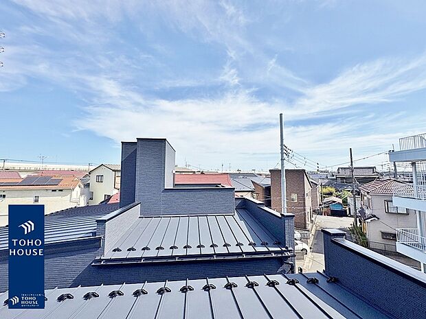南西5m道路に接道。陽当り良好。閑静な住宅街。木造2階建て4LDK。屋上スカイバルコニー付。水廻り集中設計。家事動線らくらく。2階に4室。各部屋に収納有。