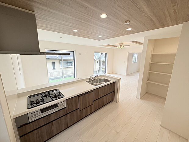 • 【LDK】家族とコミュニケーションを取りながら調理ができる開放感溢れるカウンターキッチン採用。小さなお子様がいるご家庭では、お子様から目を離すことなく安心して料理することができます。