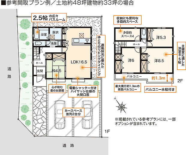• 「建築条件付き土地」の「建物プラン例」は、土地購入者の設計プランの一例であり、プランの採用可否は任意です。