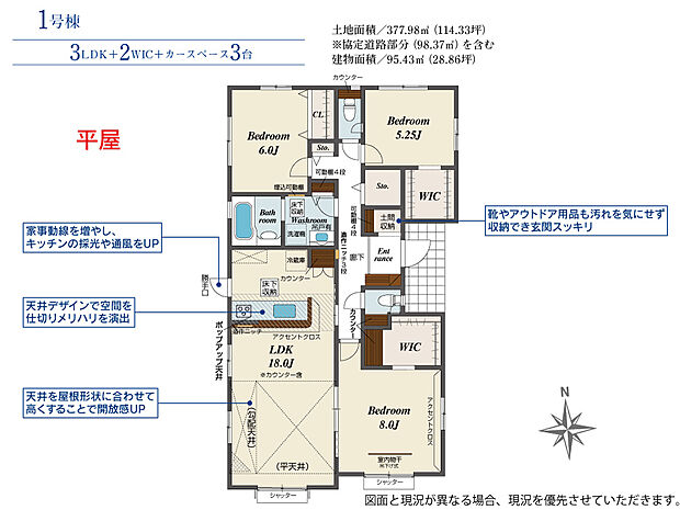 | 建物面積 | 95.43m2(約28.86坪)~107.23m2(約32.43坪) | ||