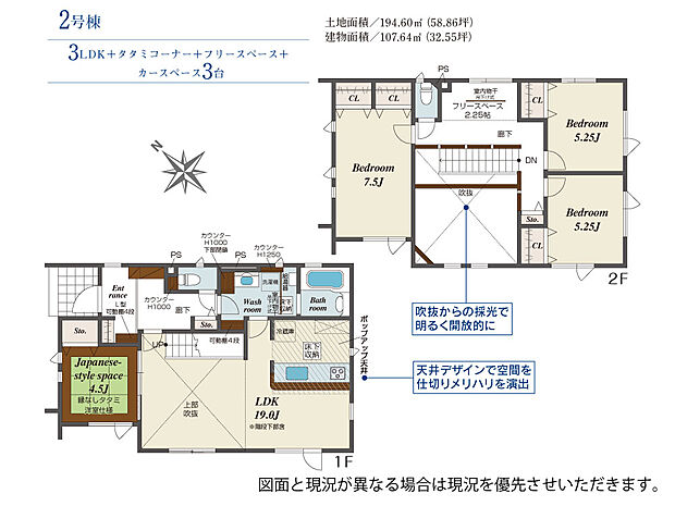 | 建物面積 | 104.54m2(約31.62坪)~107.64m2(約32.56坪) | ||