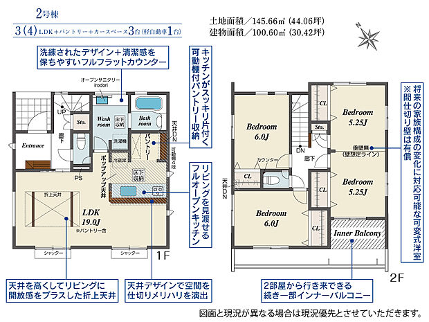 145.66m2(約44.06坪)~147.33m2(約44.56坪) |