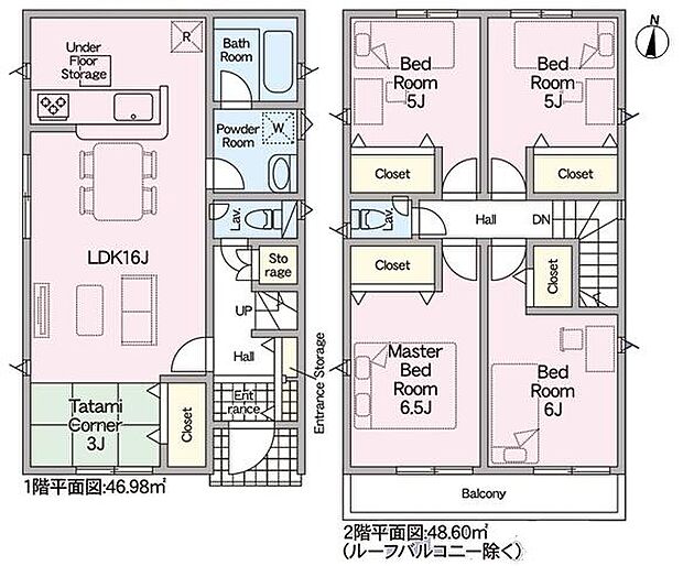 | 間取り | 4SLDK 間取り内訳:リビングダイニングキッチン 16帖(1階)・収納 3帖(1階)・洋室 6.5帖(2階)・洋室 6帖(2階)・洋室 5帖(2階)・洋室 5帖(2階) |
