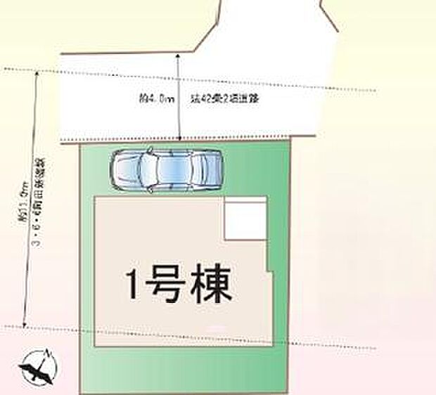 • 北西 (公道 幅員 4.00m 接面 -)