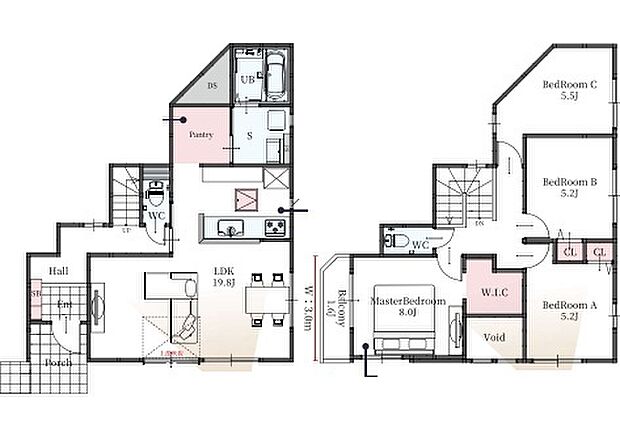 | 間取り | 4LDK 間取り内訳:リビングダイニングキッチン 19.8帖・洋室 8帖・洋室 5.5帖・洋室 5.2帖・洋室 5.2帖 |