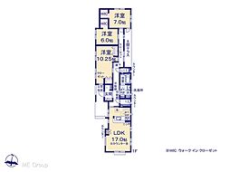| 間取り | 3LDK 間取り内訳:リビングダイニングキッチン 17帖(1階)・洋室 10.2帖(1階)・洋室 7帖(1階)・洋室 6帖(1階) |