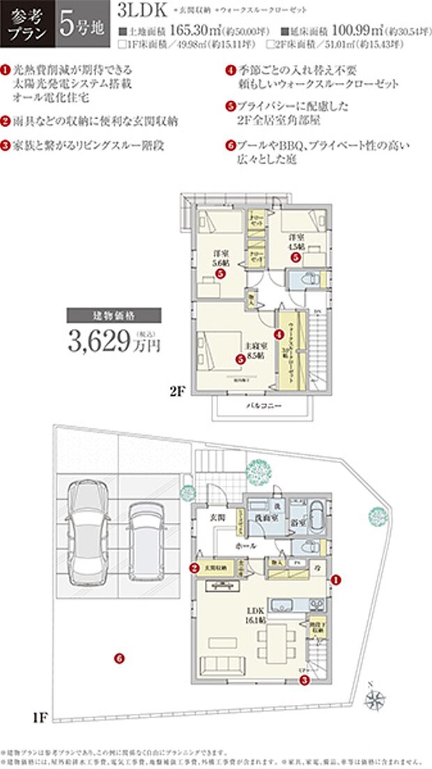 | 土地面積 | 193.75m2(2号地) 私道負担なし | ||