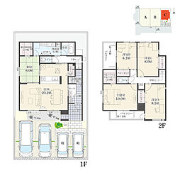 | 間取り | 4SLDK 間取り内訳:洋室 6.3帖(2階)・洋室 4.5帖(2階)・リビングダイニングキッチン 20帖(1階)・収納(1階)・洋室 8.1帖(2階)・洋室 6.5帖(2階) |