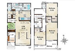 間取り内訳:リビングダイニングキッチン 21.2帖(1階)・洋室 7.5帖(2階)・洋室 6帖(2階)・洋室 5.2帖(2階)x2