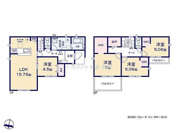 | 間取り | 4LDK 間取り内訳:リビングダイニングキッチン 15.7帖(1階)・洋室 4.5帖(1階)・洋室 7帖(2階)・洋室 5帖(2階)・洋室 5帖(2階) |