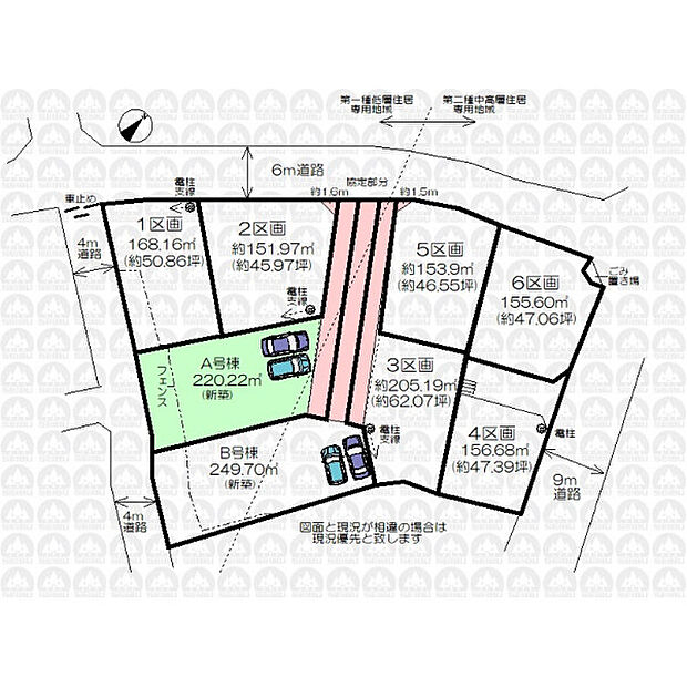 • 備考欄:フラット35を利用する場合は適合証明取得費用が生じます。/建物面積にはPH面積3.31m2、インナーバルコニー面積3.85m2を含みます。/敷地の東側一部第二種中高層住居専用地域含む(建ぺい率60% 容積率100%)/さくら通り路線地区地区計画/敷地面積には協定通路48.34m2と法面約39.77m2を含みます。/ゴミ置場持分0.25m2あり