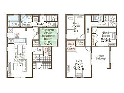 | 間取り | 4LDK 間取り内訳:リビングダイニングキッチン 18帖(1階)・和室 4.5畳(1階)・洋室 11帖(2階)・洋室 5.2帖(2階)x2 |