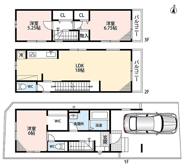 | 間取り | 3LDK | 建物階 | 木造3階建(軸組工法) |