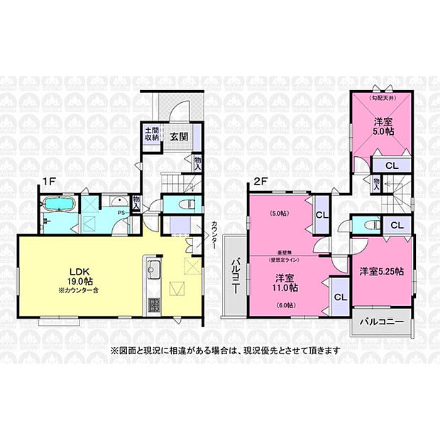 カースペース並列2台可(車種による)/角地につき日当たり良好/LDK19帖/4LDKに間取り変更可能(要費用)