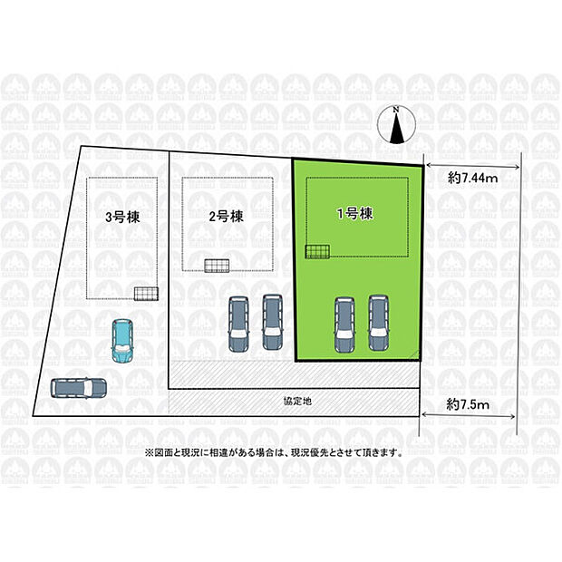 カースペース並列2台可(車種による)/土地正味45坪/南側協定道路につき陽当たり良好